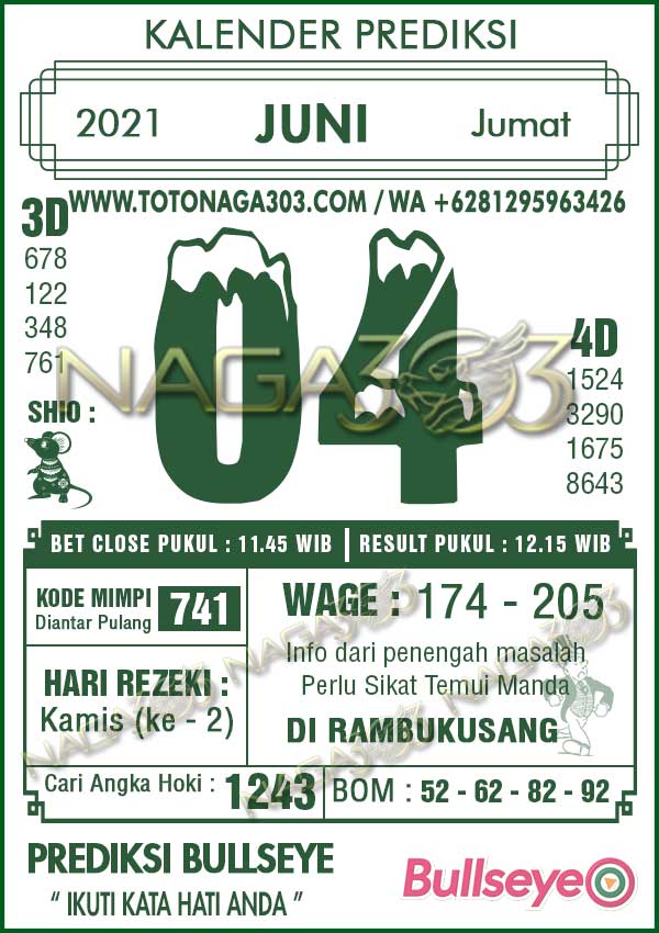 Prediksi Bullseye Jumat 04 Juni 2021