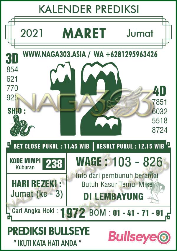 Prediksi Bullseye Jumat 12 Maret 2021