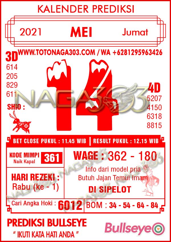Prediksi Bullseye Jumat 14 Mei 2021 | Web Toto Naga303