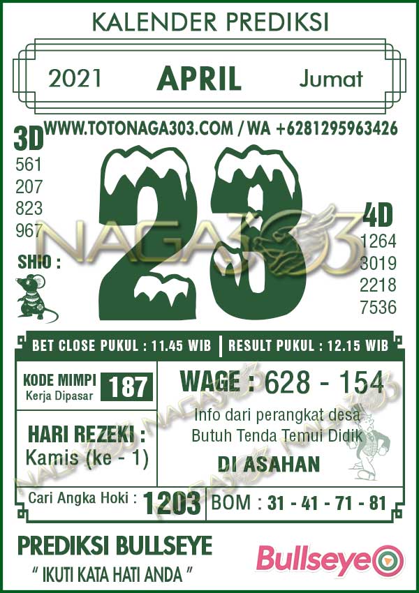 Prediksi Bullseye Jumat 23 April 2021