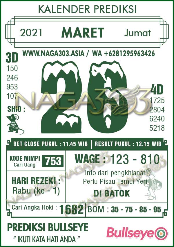 Prediksi Bullseye Jumat 26 Maret 2021 | Web Toto Naga303