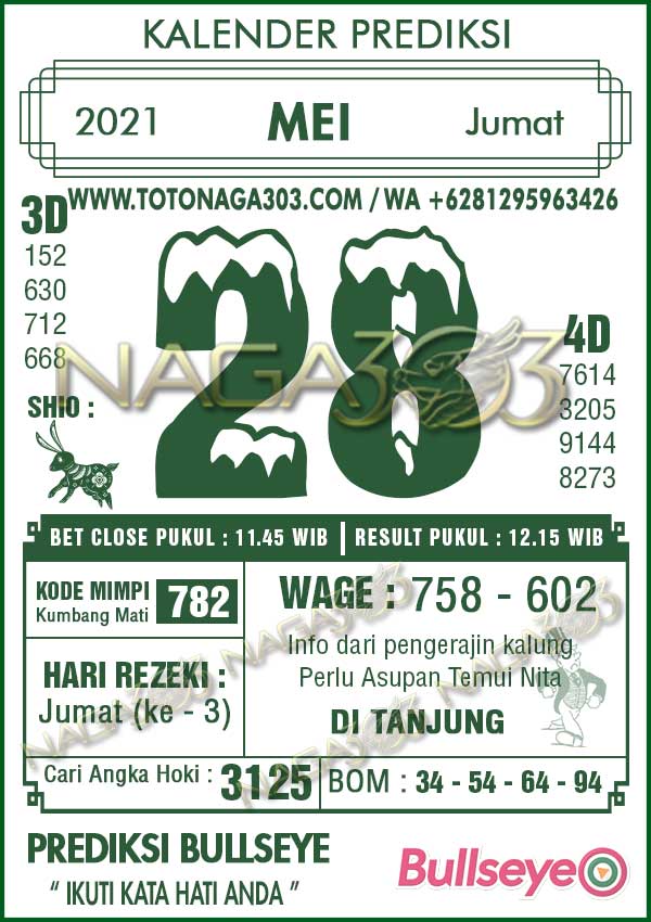 Prediksi Bullseye Jumat 28 Mei 2021