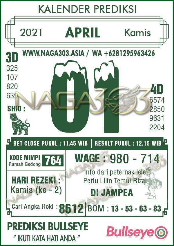 Prediksi Bullseye Kamis 01 April 2021 | Web Toto Naga303