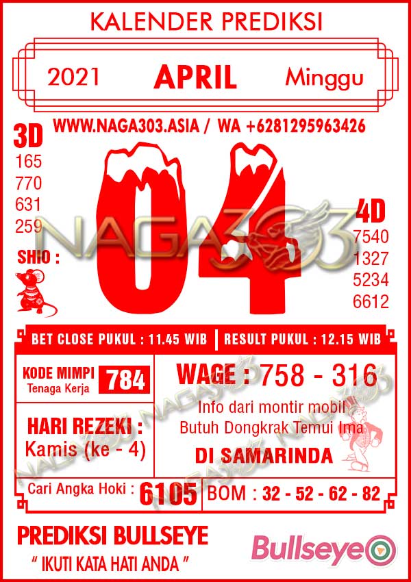 Prediksi Bullseye Minggu 04 April 2021 | Web Toto Naga303