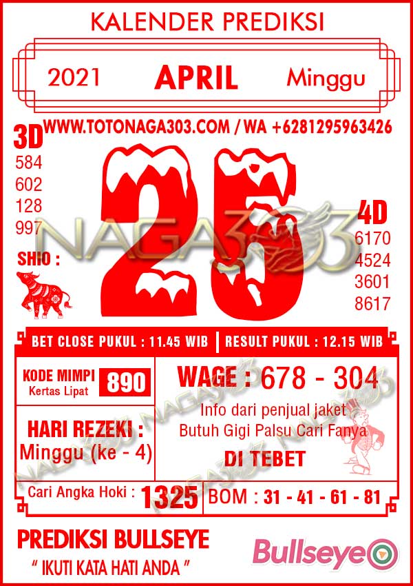 Prediksi Bullseye Minggu 25 April 2021