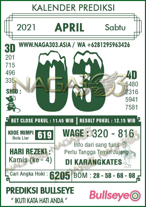 Prediksi Bullseye Sabtu 03 April 2021 | Web Toto Naga303