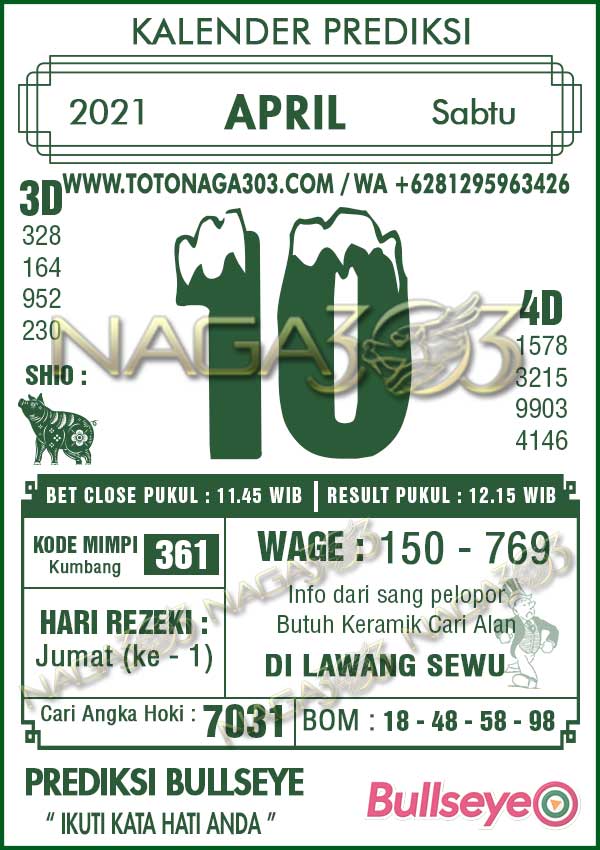 Prediksi Bullseye Sabtu 10 April 2021