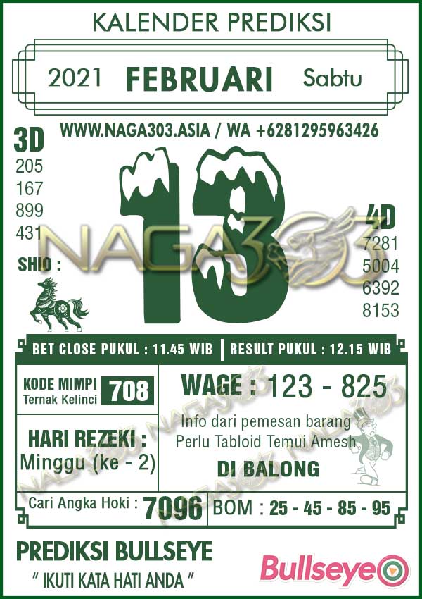 Prediksi Bullseye Sabtu 13 Februari 2021