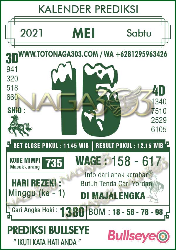 Prediksi Bullseye Sabtu 15 Mei 2021