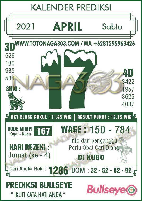 Prediksi Bullseye Sabtu 17 April 2021 | Web Toto Naga303