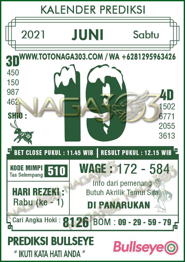 Prediksi Bullseye Sabtu 19 Juni 2021