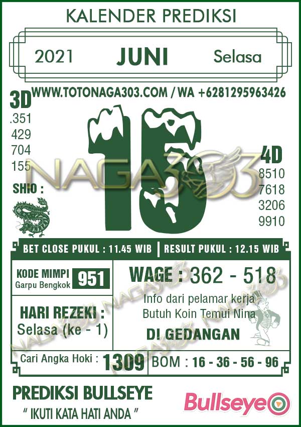 Prediksi Bullseye Selasa 15 Juni 2021