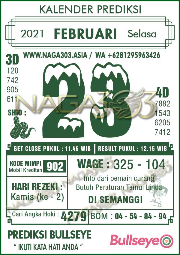 Prediksi Bullseye Selasa 23 Februari 2021 | Web Toto Naga303