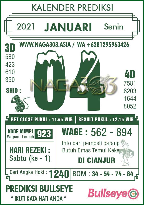 Prediksi Bullseye Senin 04 Januari 2021