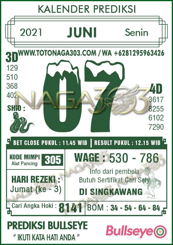 Prediksi Bullseye Senin 07 Juni 2021