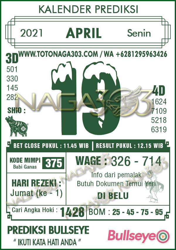 Prediksi Bullseye Senin 19 April 2021 | Web Toto Naga303