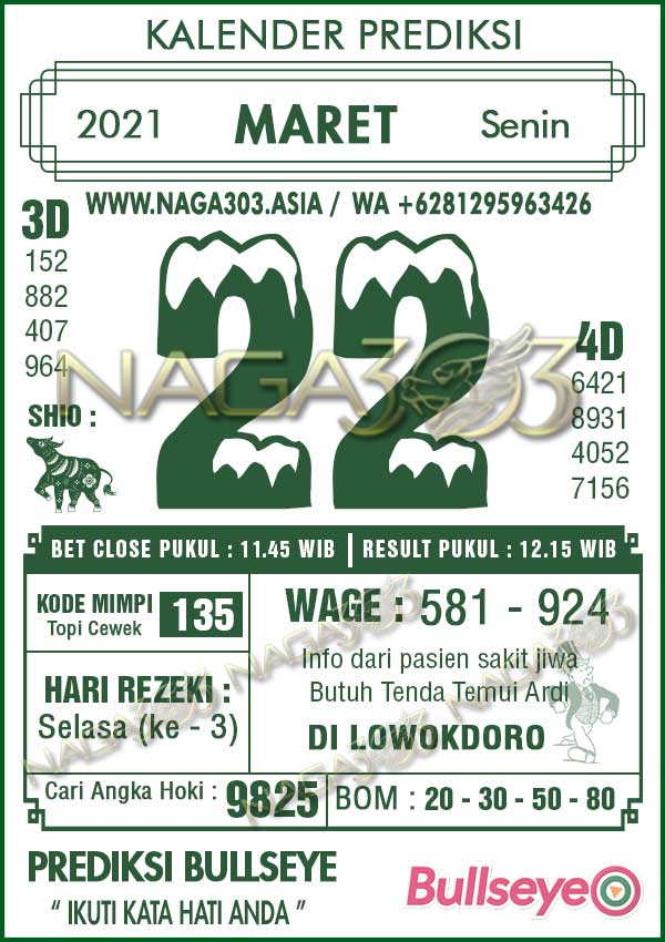 Prediksi Bullseye Senin 22 Maret 2021 | Web Toto Naga303