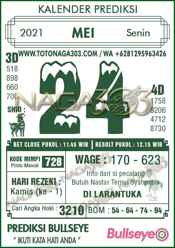 Prediksi Bullseye Senin 24 Mei 2021 | Web Toto Naga303