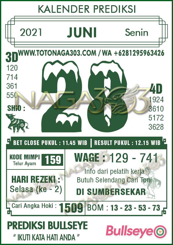 Prediksi Bullseye Senin 28 Juni 2021 | Web Toto Naga303