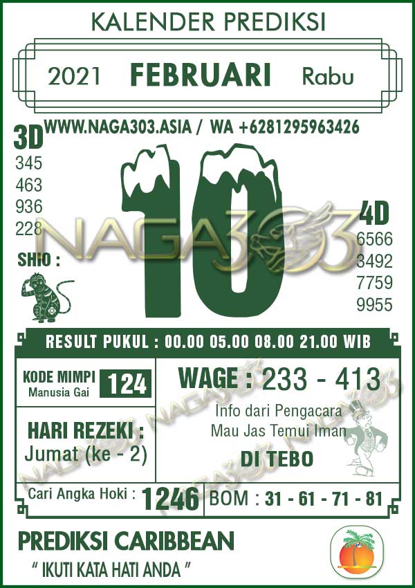 Prediksi Caribbean Pools Rabu 10 Februari 2021 | Web Toto Naga303