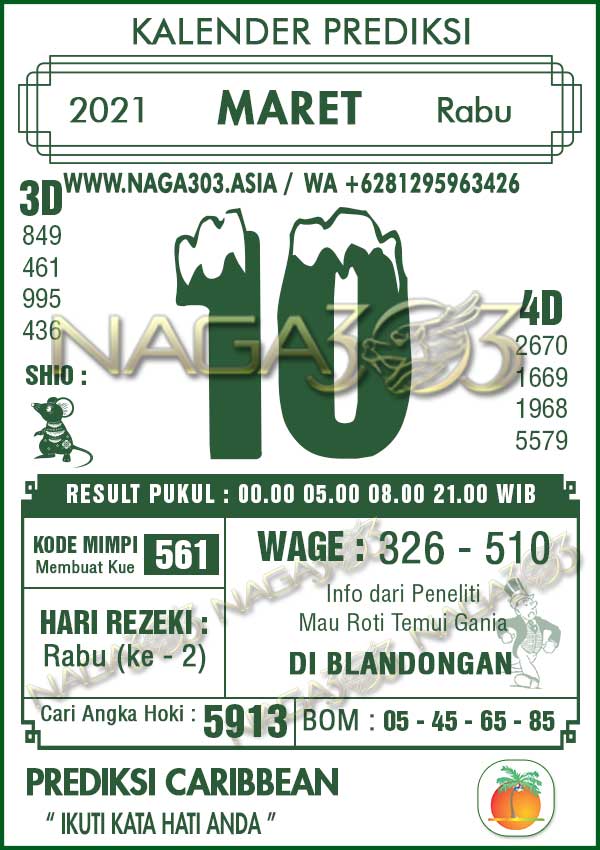 Prediksi Caribbean Pools Rabu 10 Maret 2021 | Web Toto Naga303