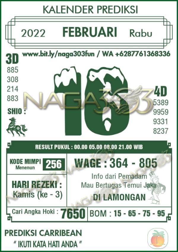 Prediksi Caribbean Pools Rabu 16 Februari 2022 | Web Toto Naga303