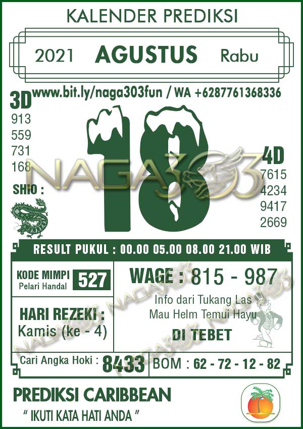 Prediksi Caribbean Pools Rabu 18 Agustus 2021 | Web Toto Naga303