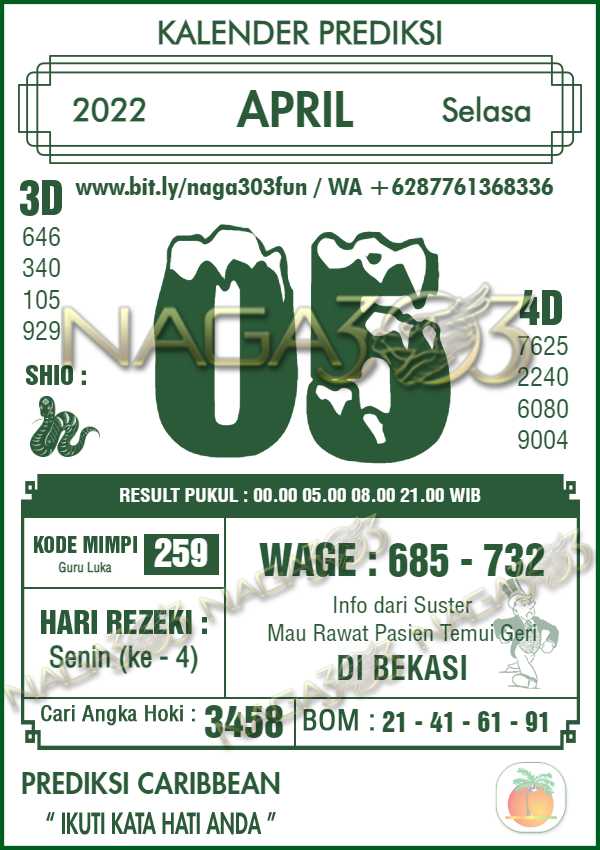 Prediksi Caribbean Pools Selasa 05 April 2022 | Web Toto Naga303