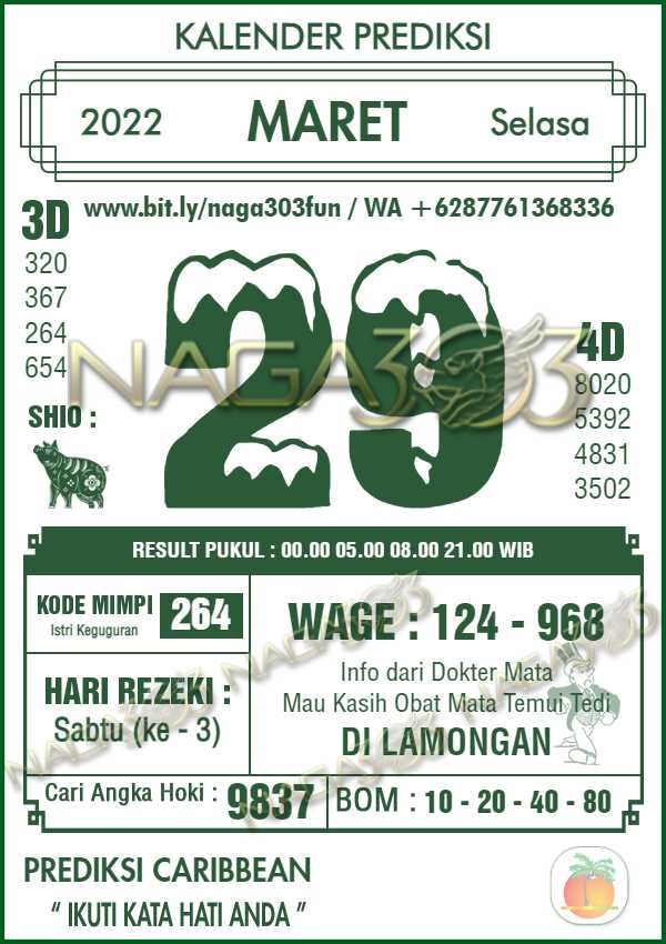 Prediksi Caribbean Pools Selasa 29 Maret 2022 | Web Toto Naga303