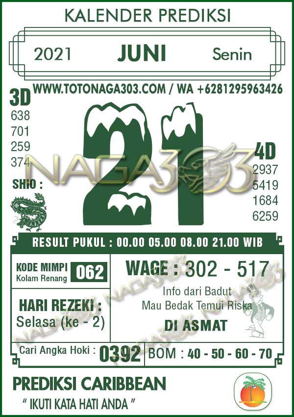 Prediksi Caribbean Pools Senin 21 Juni 2021 | Web Toto Naga303