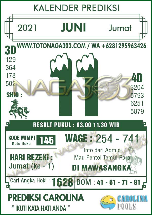 Prediksi Carolina Pools Jumat 11 Juni 2021 | Web Toto Naga303