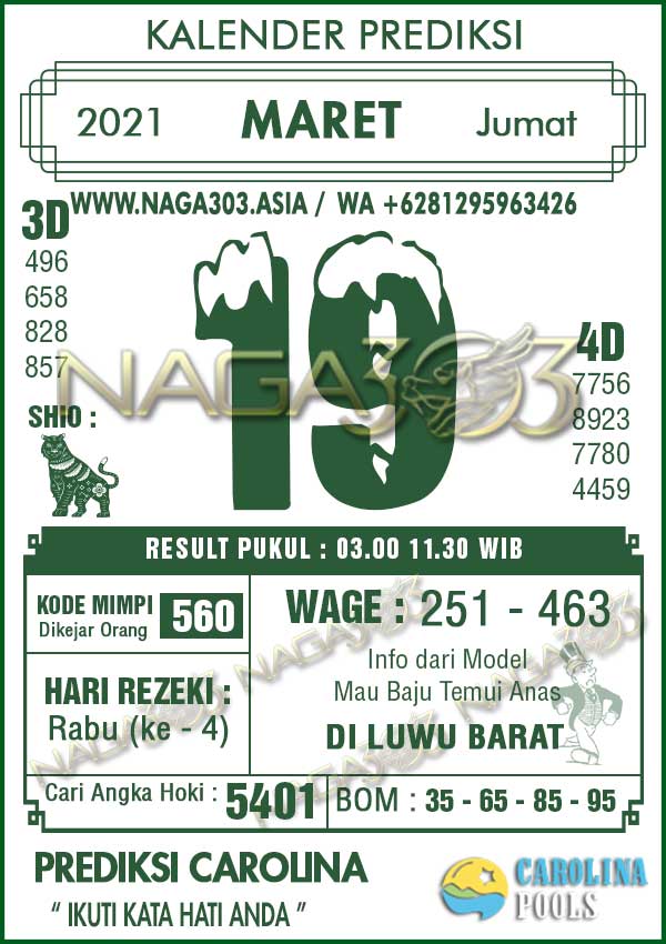 Prediksi Carolina Pools Jumat 19 Maret 2021 | Web Toto Naga303