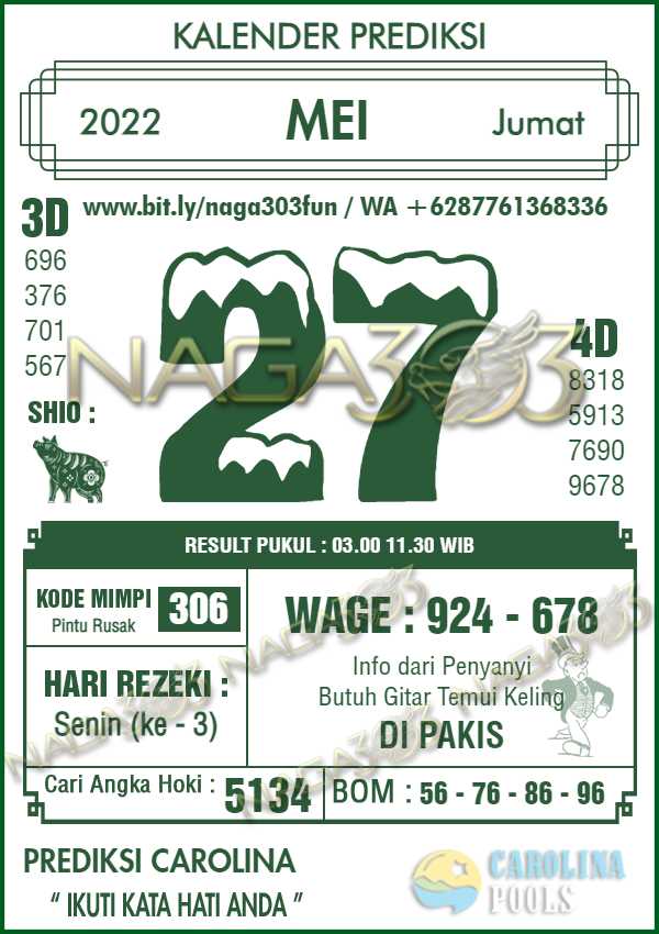 Prediksi Carolina Pools Jumat 27 Mei 2022