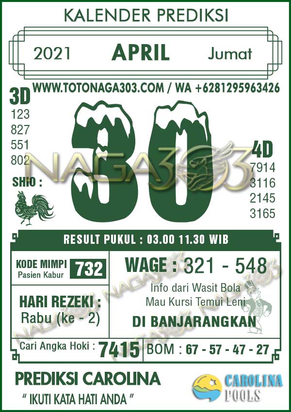 Prediksi Carolina Pools Jumat 30 April 2021 | Web Toto Naga303