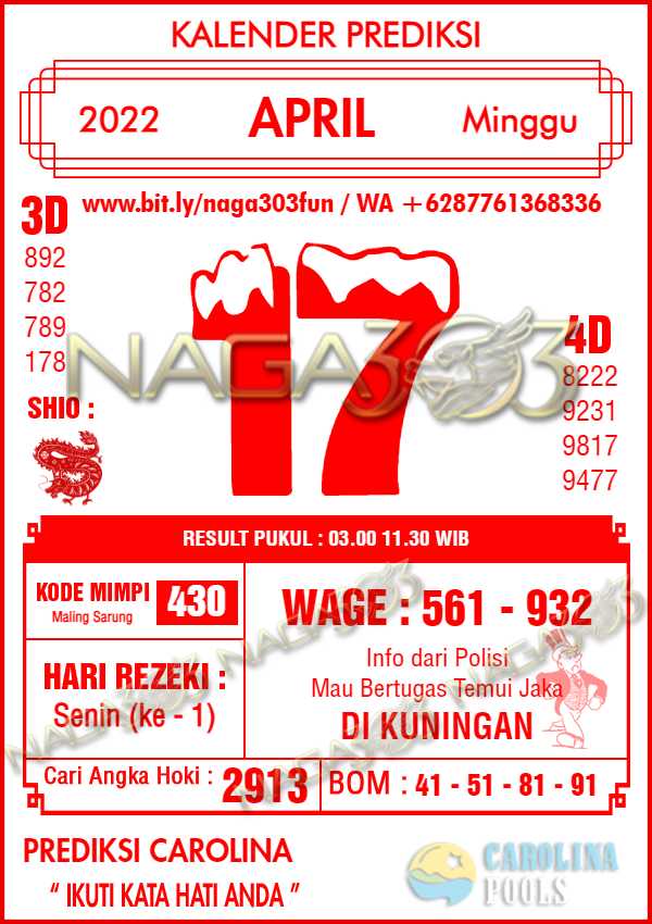 Prediksi Carolina Pools Minggu 17 April 2022 | Web Toto Naga303
