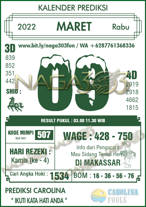 Prediksi Carolina Pools Rabu 09 Maret 2022