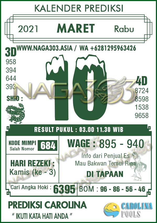 Prediksi Carolina Pools Rabu 10 Maret 2021 | Web Toto Naga303