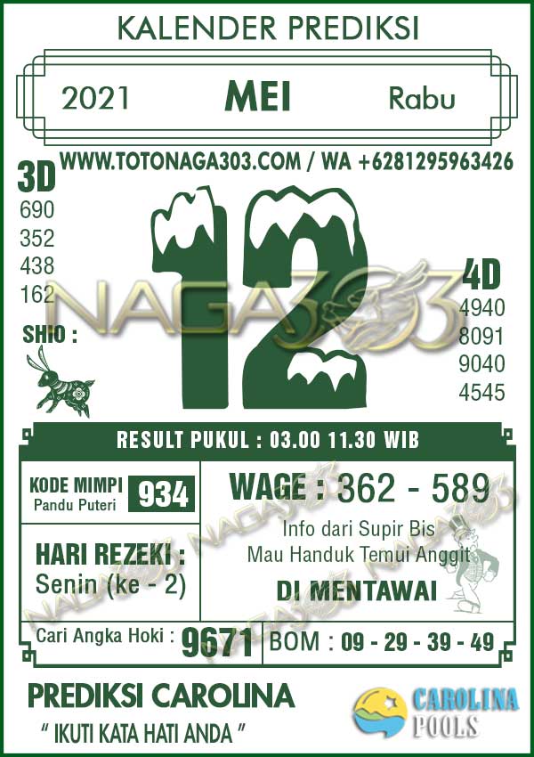 Prediksi Carolina Pools Rabu 12 Mei 2021