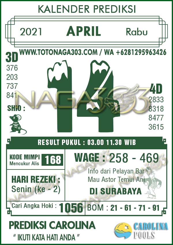 Prediksi Carolina Pools Rabu 14 April 2021 | Web Toto Naga303