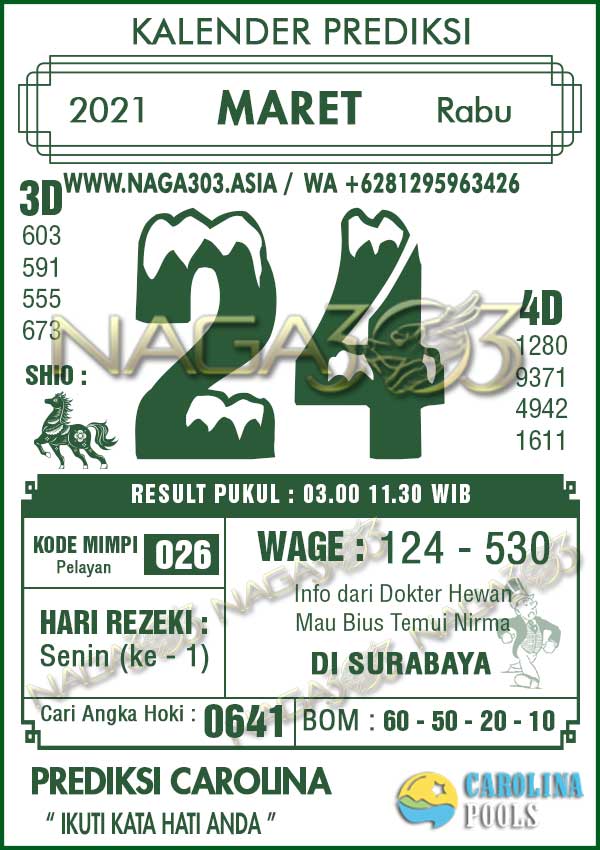 Prediksi Carolina Pools Rabu 24 Maret 2021