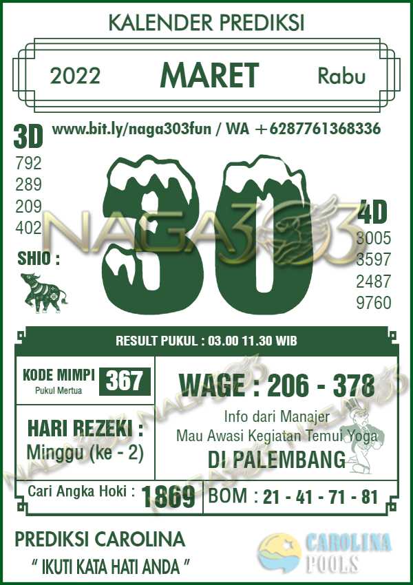 Prediksi Carolina Pools Rabu 30 Maret 2022
