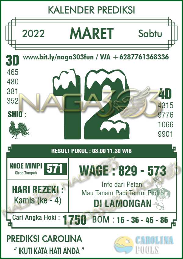 Prediksi Carolina Pools Sabtu 12 Maret 2022 | Web Toto Naga303