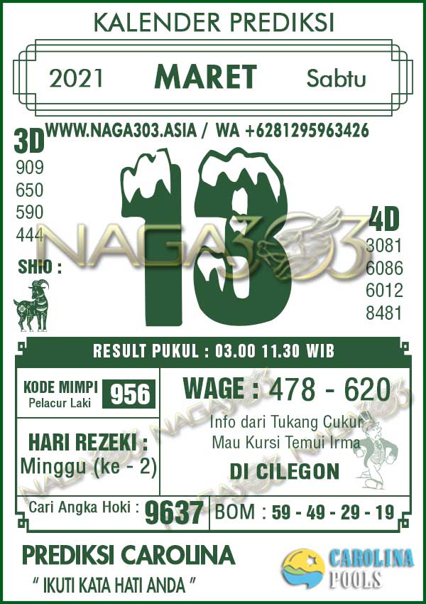 Prediksi Carolina Pools Sabtu 13 Maret 2021 | Web Toto Naga303