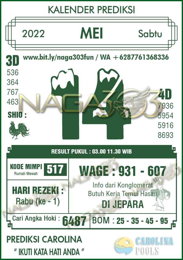 Prediksi Carolina Pools Sabtu 14 Mei 2022 | Web Toto Naga303