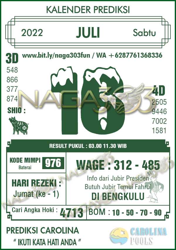 Prediksi Carolina Pools Sabtu 16 Juli 2022 | Web Toto Naga303