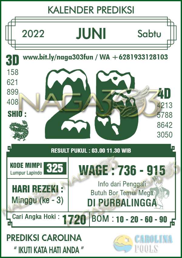 Prediksi Carolina Pools Sabtu 25 Juni 2022 | Web Toto Naga303
