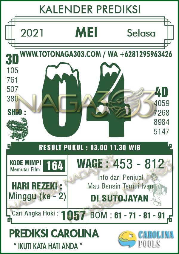 Prediksi Carolina Pools Selasa 04 Mei 2021 | Web Toto Naga303