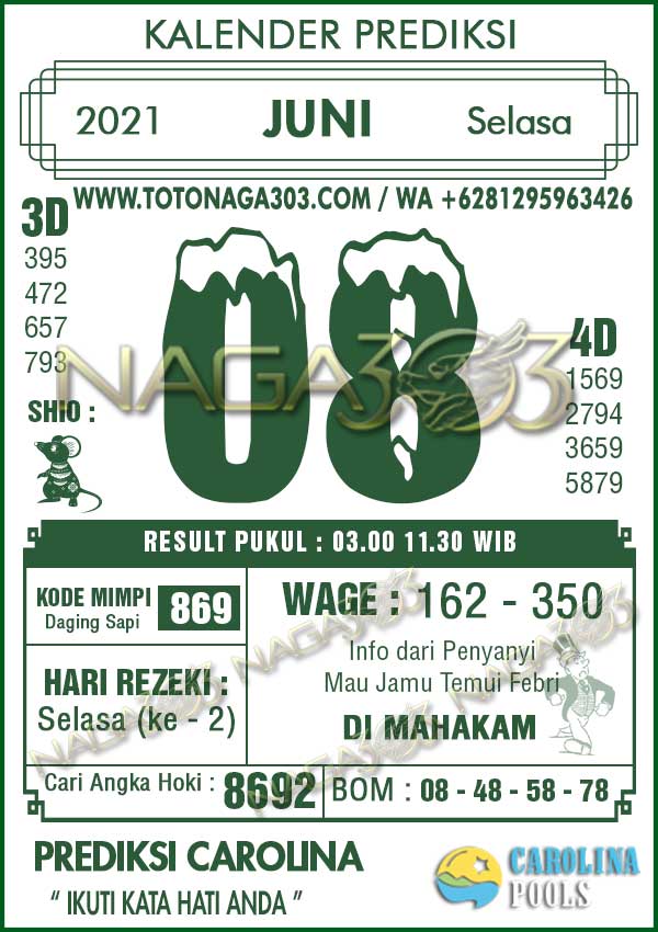 Prediksi Carolina Pools Selasa 08 Juni 2021 | Web Toto Naga303