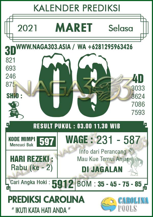 Prediksi Carolina Pools Selasa 09 Maret 2021 | Web Toto Naga303