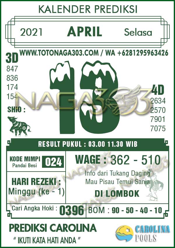 Prediksi Carolina Pools Selasa 13 April 2021 | Web Toto Naga303